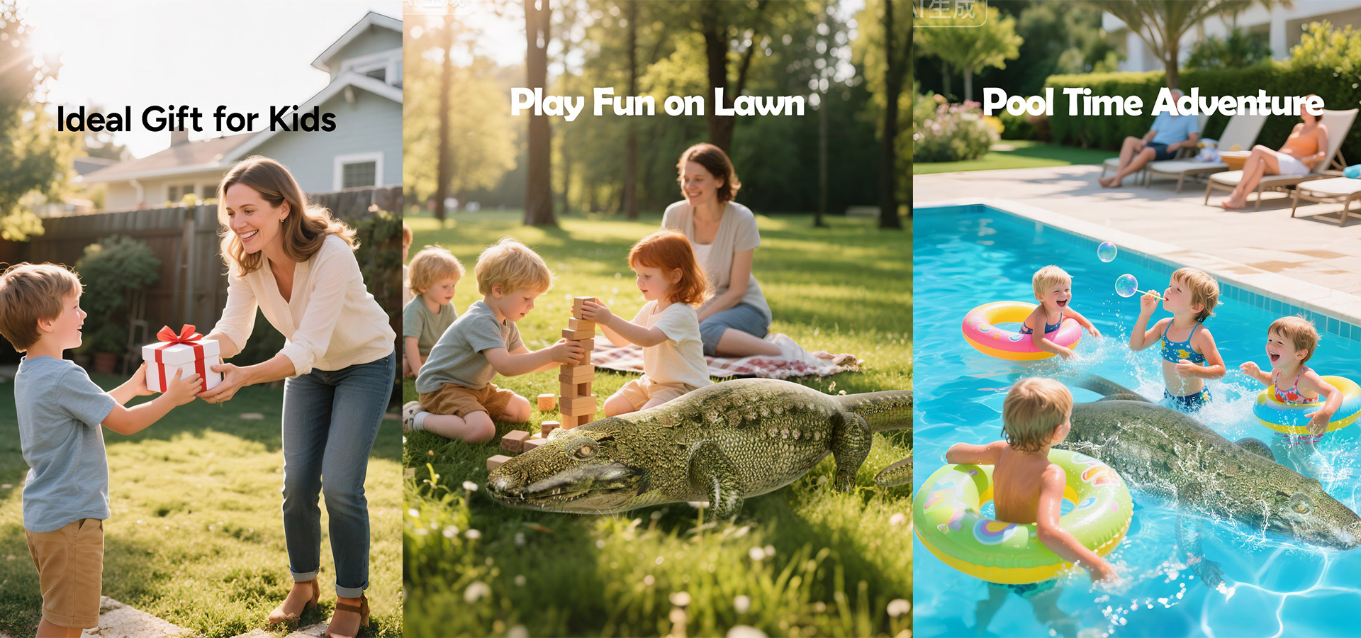 【Realistic Inflatable Toy】: Designed in the shape of a crocodile with vivid colors and details, making it a fun decoration for themed parties and events. 【Great Party Decoration】: This inflatable crocodile works as a playful pool toy, photo prop, or unique décor for birthdays, summer gathe..